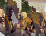 కేరళం త్రిస్సూర్ జిల్లాలోని అన్నమనాడ గ్రామంలోని మహాదేవ ఆలయం ఉత్సవాల్లో భాగంగా ఊరేగింపు నిర్వహించేందుకు ఏనుగులను దేవతా విగ్రహాన్ని ఊరేగింపునకు సిద్ధం చేసే క్రమంలో ఓ పూజారి ఏనుగుపై కూర్చోగా.. పక్కన ఉన్న వారు ఏనుగు పక్కనే నిలబడ్డారు. అయితే అప్పటిదాకా ప్రశాంతంగా ఉన్న ఏనుగు.. ఒక్కసారిగా రెచ్చిపోయింది. పక్కనే నిలబడ్డ పూజారిని తొండంతో పట్టుకుని గాల్లోకి లేపింది. ఆ తర్వాత.. అంతా చూస్తుండగానే అతన్ని దూరంగా విసిరేసింది. తీవ్రగాయాలపాలైన వ్యక్తిని చికిత్స నిమిత్తం ఆస్పత్రికి తరలించారు.