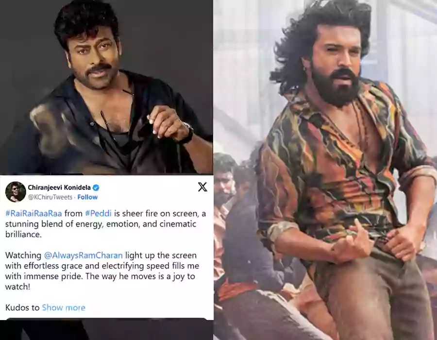 తాజాగా విడుదలైన రై రై రా రా సాంగ్ లో మాస్ గెటప్ లో  మరోసారి తన డ్యాన్స్ తో కుమ్మేశాడు చెర్రీ. ఈ సాంగ్ వీడియో యూట్యూబ్ లో దూసుకుపోతుంది. తాజాగా చెర్రీ డ్యాన్స్ పై చిరు ట్వీట్ చేశారు. రామ్ చరణ్ డ్యాన్స్ పై చిరంజీవి రియాక్ట్ అయ్యారు. రామ్ చరణ్ ను ఇలా చూడటం నాకు అపారమైన గర్వాన్ని నింపుతుంది. అతను కదిలే విధానం చూడటానికి ఆనందంగా ఉందని ట్వీట్ చేశారు.