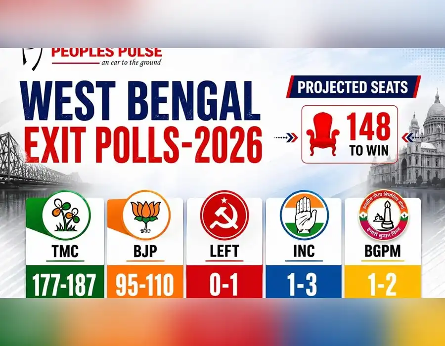 బెంగాల్ కోటపై కాషాయ జెండా ఎగురవేయాలని అగ్రనేతలందరూ సర్వశక్తులు ఒడ్డినా.. ‘బంగ్లా’ ప్రజల మనసు గెలుచుకోవడంలో మమతా బెనర్జీ మరోసారి తన మార్క్ చూపించారు. పశ్చిమ బెంగాల్‌లోని 294 స్థానాలకు   పీపుల్స్ పల్స్ సర్వే అంచనాల ప్రకారం.. మమతా బెనర్జీ నేతృత్వంలోని టీఎంసీ ఏకంగా 177-187 స్థానాలను కైవసం చేసుకోబోతోంది. మరోవైపు అధికారం కోసం సర్వశక్తులూ ఒడ్డిన బీజేపీ 95-110 స్థానాలకే పరిమితం కానుంది. కాంగ్రెస్ (1-3), వామపక్షాలు (0-1) నామమాత్రపు ఉనికిని మాత్రమే చాటుకోబోతున్నాయి.