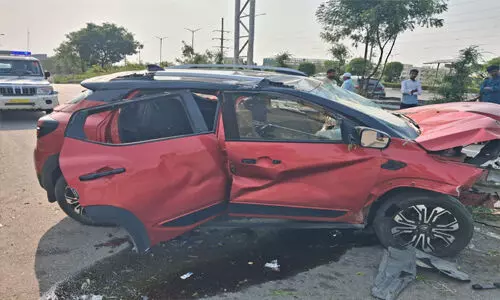 దుండిగల్ పోలీస్ స్టేషన్ పరిధి మల్లంపేట ఔటర్ రింగ్ రోడ్డు ఎగ్జిట్ 4ఏ వద్ద కారు అదుపుతప్పి రైలింగ్ ను ఢీకొట్టింది. ఈ ప్రమాదంలో నిజాంపేటకు చెందిన ఐటీ ఉద్యోగి సాయి తేజ మృతి చెందగా,అతని మేనల్లుడు 8 సంవత్సరాల బాలుడు తీవ్రంగా గాయపడ్డాడు. స్థానికుల సమాచారం మేరకు ఘటనాస్థలికి చేరుకున్న పోలీసులు గాయపడిన బాలుడిని చికిత్స నిమిత్తం ఆసుపత్రికి తరలించారు. ఈ ఘటనపై కేసు నమోదు చేసుకున్న పోలీసులు పోస్ట్ మార్టం నిమిత్తం మృతదేహాన్ని ఆసుపత్రికి తరలించి దర్యాప్తు చేపట్టారు.