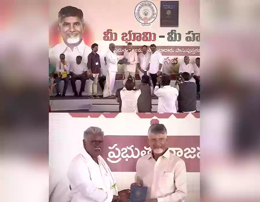 బాపట్ల జిల్లా వేమూరు నియోజకవర్గంలోని సూరేపల్లిలో ‘మీ భూమి-మీ హక్కు’ కార్యక్రమంలో సీఎం చంద్రబాబు మాట్లాడారు. ప్రజల ఆస్తులకు భద్రత ఇవ్వాలనే.. పట్టాదారు పాసు పుస్తకాలు ఇస్తున్నట్లు తెలిపారు. భూమి అనేది ఆస్తి మాత్రమే కాదని.. జీవనాధారం, భద్రత, గౌరవమని పేర్కొన్నారు.మీకు ఇచ్చే పాస్ పుస్తకాలను ఎవరూ తారుమారు చేయలేరు. కరెన్సీకి వాడే సాంకేతికతే పట్టాదారు పాస్ పుస్తకాలకు వాడాం. రూపాయి కూడా అవినీతి లేకుండా పాస్ పుస్తకాలు ఇవ్వాలనేది నా ఆలోచన అని సీఎం చంద్రబాబు పేర్కొన్నారు.