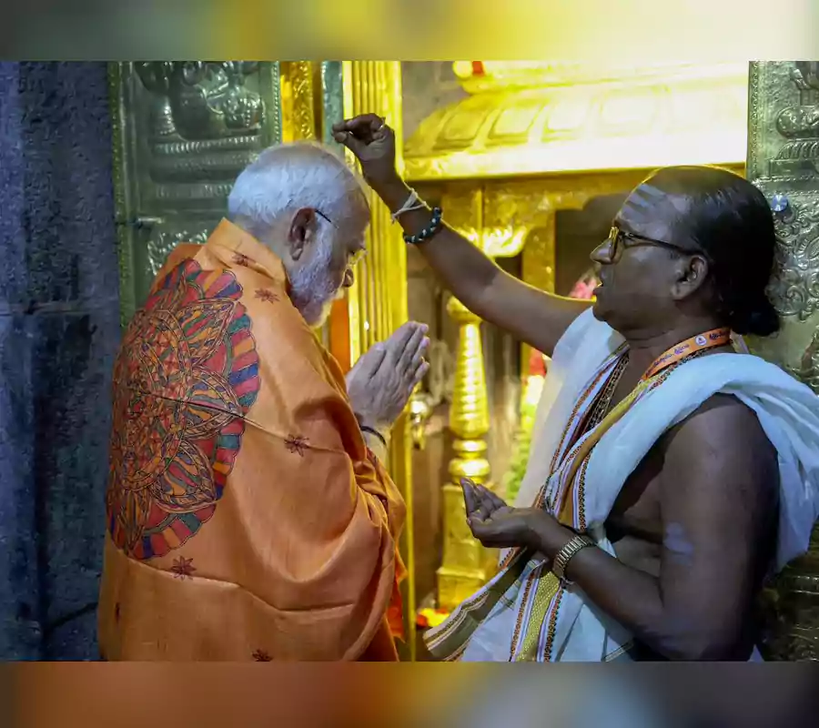 శ్రీశైలంమల్లికార్జున స్వామివారిని ప్రధాని నరేంద్ర మోదీ దర్శించుకున్నారు. మోదీకి దేవస్థానం ప్రధాన ద్వారం వద్ద వేద పండితులు పూర్ణకుంభంతో ఘనస్వాగతం పలికారు. అనంతరం ప్రధాన మంత్రికి విభూతి, కుంకుమ ధరింపజేసి ప్రదక్షిణకార మార్గంలో ఆలయ అంతర్భాగానికి ఆహ్వానించారు. ప్రధాన మంత్రి ధ్వజస్తంభ నమస్కారం, శివ సంకల్పం అనంతరం రత్నగర్భ గణపతి పూజ నిర్వహించారు,మూలవిరాట్ శ్రీ మల్లికార్జున స్వామి జ్యోతిర్లింగానికి ఏకవార రుద్రాభిషేకం, బిల్వార్చన, మల్లెపూల అర్చన, మహామంగళ హారతి, మంత్ర పుష్పాలతో భక్తి శ్రద్ధలతో ప్రత్యేక పూజలు చేశారు.