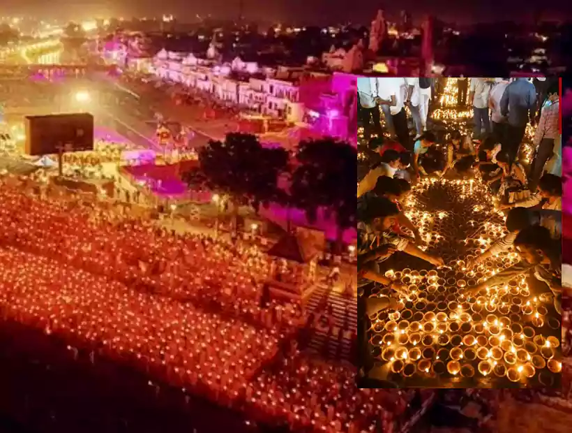 అయోధ్య నగరం ఈ దీపావళి వేళ చరిత్ర సృష్టించింది. భక్తుల సందడి, దీపాల కాంతి, సరయూ నదీ తీరంలోని ఆ భవ్య దృశ్యం ఆకట్టుకుంటుంది. ఆధ్యాత్మిక, సాంస్కృతిక, సామాజిక, సాంకేతికతల మేళవింపుతో అంగరంగ వైభవంగా.. 9వ దీపోత్సవం కనుల పండువగా సాగింది. 56 ఘాట్లలో ఏకంగా 26 లక్ష 11 వేల 101 దీపాలను వెలిగించారు. 2 వేల వంద మందితో సరయూ నదీ తీరాన మహా హారతి నిర్వహించారు. 1,100 డ్రోన్లతో రామాయణ ఘట్టాలను కళ్లకు కట్టారు. బాలకాండం నుంచి ఉత్తరకాండం వరకు ఏడు కాండాల ప్రదర్శనకు ప్రత్యేక శకటాలు ఏర్పాటు చేశారు.